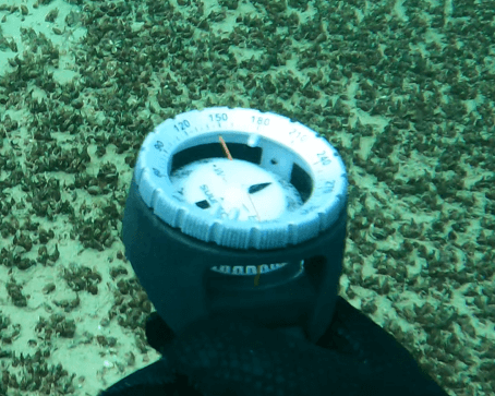 Ein Tauchkompass nutzt das Erdmagnetfeld zur Orientierung, indem er eine in Flüssigkeit gelagerte Magnetnadel verwendet. Diese Flüssigkeit stabilisiert die Nadel, sodass sie auch bei Strömung oder unruhigem Wasser ruhig bleibt und nach Norden zeigt. Viele Kompasse verfügen über eine phosphoreszierende Scheibe, die bei schlechten Lichtverhältnissen sichtbar bleibt. Unter Wasser ist diese Funktion unverzichtbar, da Licht begrenzt ist.
